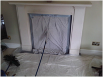 - The fireplace or stove is first sealed up with a specially designed cloth sheet and the vacuum and brush rods are worked through it. As the soot falls down, the vacuum removes it or it is fully contained.